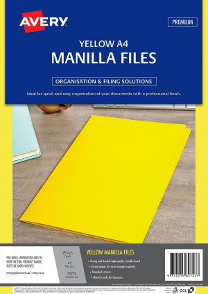 MANILLA FOLDER AVERY A4 YELLOW PK20