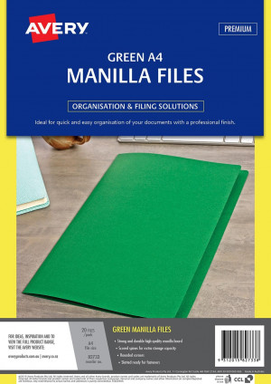 MANILLA FOLDER AVERY A4 GREEN PK20